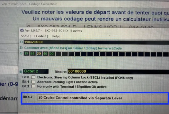 Select bit“4-7” 20 Cruise Control controlled via Separate Lever